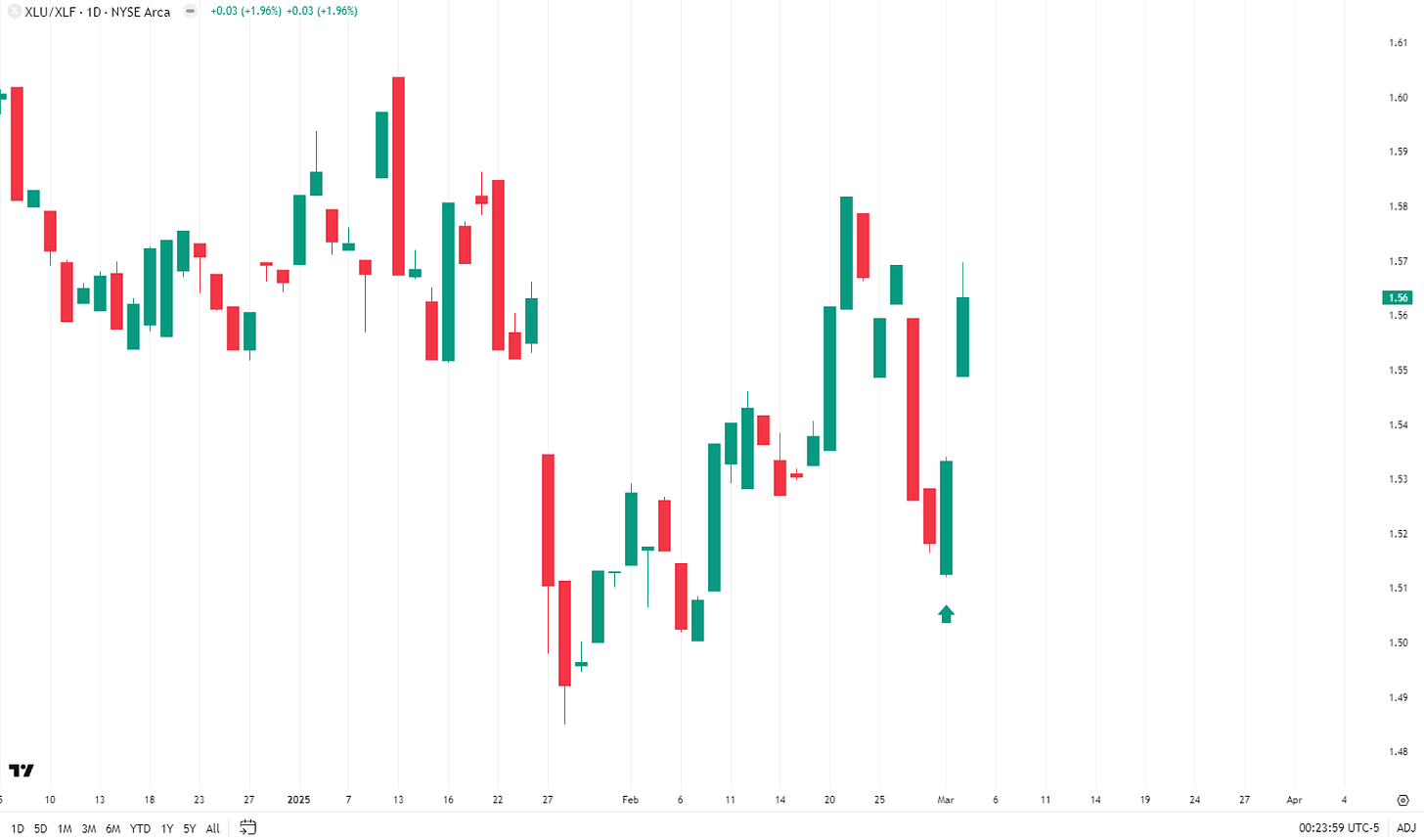 Long XLU 0.00%↑ short XLF 0.00%↑ - up +1.9% on this pair yesterday