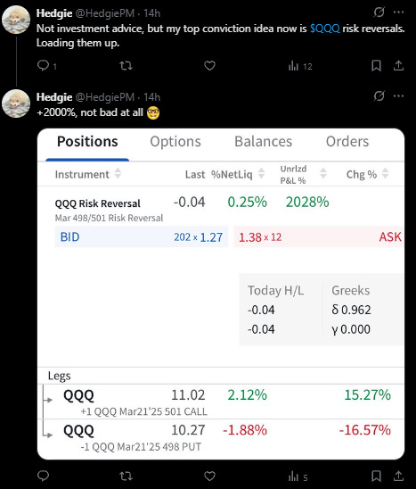 TwitterI mean X:In trading, with the right risk management, you don’t expect to get all calls right. I got all my calls right. I guess this is the best time to say…