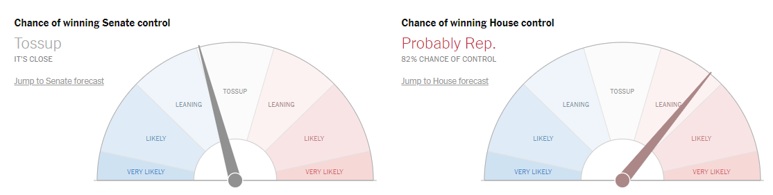 US futures edging higher as election results stream in. Looks almost certain of either a Republican sweep or a split house (R) and senate (D). The NYTimes has a great tracker: